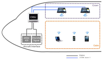 客舱全覆盖,三频并发,可实现全舱Wi-Fi信号覆盖,3个CWAP可最多满足200个用户同时点播2.5Mbps高清视频